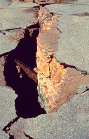 A crack opened along Summit Road in Santa Cruz County. (All Loma Prieta historical photos courtesy Gary Griggs)