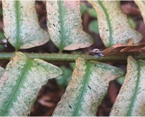 Pittermann and others have noticed an increase in infestations of thrips, tiny insects that feed on plant sap, affecting ferns during the drought. Other observers in Marin County have reported thrips infestations and dieback of ferns in that area’s redwood forests, including popular tourist sites such as Muir Woods.