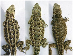 UCSC researchers have found that female side-blotched lizards are able to induce different color patterns in their offspring in response to social cues, “dressing” their progeny in patterns they will wear for the rest of their lives.