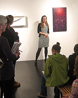 She devoted seven months to the three new paintings, completing them this past August. Gwyn attended the exhibit opening a month later and spent time meeting with Skidmore College students in organic chemistry, art theory, and painting classes. She also participated in public panels along with the curators, scientists, a historian, and another artist to discuss the art/science collaboration.
