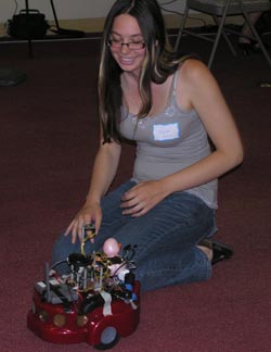 Students from associate linguistics professor Beth Ann Hockey’s Language Engineering class showed visitors how to make robots move with the sound of their voice, learn English through immersion in a virtual world, and use a telephone reminder system to manage school tasks and aid in memory retention.