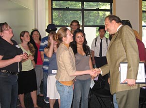 Barbara Bedford, director of the Career Center, welcomed the group and got the event started. Felicia McGinty, vice chancellor of Student Affairs, introduced Chancellor George Blumenthal who offered his congratulations. Student speakers Konstanty Hordynski and Evelyn Serrano also addressed the gathering.