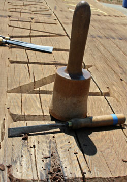 The next challenge was finding the right artist to carve the front. Enter Chris Stinehour of Berkeley, who works with architects and designers. Stinehour based his design on the original letters, producing three sample layouts. “Once you get to carving, all the hard work is done,” he said. “You just have to work with the material.”