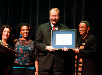 Roberts’s message—holding fast against oppression and bigotry, without succumbing to either the temptation or the threat of violence—was one of the night’s uniting themes. The Reverend Deborah L. Johnson, founding minister and president of Inner Light Ministries, a multi-faith outreach ministry, expanded on this theme as she accepted this year’s Tony Hill Award for Community Service, given to recipients who honor the legacy of Hill, a prominent activist who died in 2007.