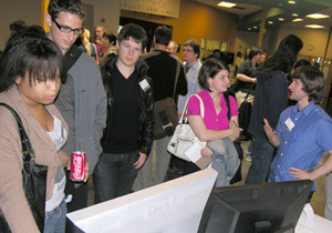 Guests got a look at what research in games looks like at UC Santa Cruz as they browsed graduate students’ technology demonstration projects, which lined the lobby.