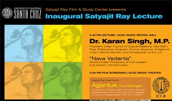 Distinguished Indian statesman and diplomat Dr. Karan Singh will deliver the 2011 Satyajit Ray Lecture at UC Santa Cruz on Saturday, September 24, at 5:30 p.m. in the Music Recital Hall.