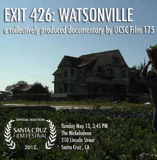 Exit 426: Watsonville will have its premiere on Sunday, May 13, at the Nickelodeon Theater in Santa Cruz as part of the 2012 Santa Cruz Film Festival.