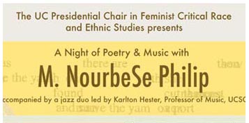 The UC Presidential Chair in Feminist Critical Race and Ethnic Studies presents an evening with acclaimed poet, writer, and lawyer M. NourbeSe Philip on Thursday, November 29, at the UCSC Humanities Lecture Hall.