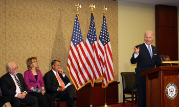 A conference room at the U.S. Capitol named for the late congressional staffer Gabriel Zimmerman (Stevenson, ’02, sociology) was formally dedicated Tuesday (April 16) in a ceremony with Vice President Joe Biden, House Speaker John Boehner, former U.S. Rep. Gabby Giffords, and Zimmerman’s family among the attendees.