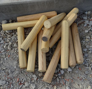 Locust pegs from New Hampshire complete the mortise and tenon joints that link timbers.