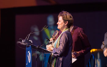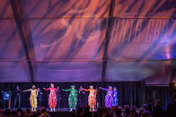 At its Fiat Fifty spectacular celebration, UC Santa Cruz threw a party like never before. Under a huge tent on the East Field, gravity-defying (and apparently boneless) dancer-gymnast-contortionists from Tandy Beal & Company entertained a crowd of 750, and a beaming Alice Waters, the celebrated chef, author, and sustainable foods champion, gave a rousing keynote. Waters called UC Santa Cruz “an institution that has nurtured me and is really close to my heart, an institution that still expresses so many of the values I cherish and I fight for every day.” Waters also gave a candid interview with UC Santa Cruz Review magazine.