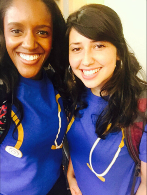 Elisabeth Parra, right, with her classmate Lisa Umeh from the
