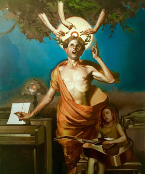 Next to Buchanan is a large work-in-progress he’s titled, “Apollo Crowned Glorious While Instructing a Child in the Art of Music.”