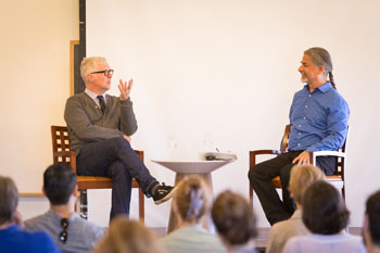 James Freeman of Blue Bottle Coffee and UCSC philosophy chair and associate professor Daniel Guevara had an eye-opening conversation as part of the True Originals series. Photo by Steve Kurtz.