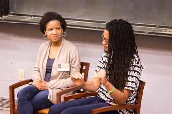 Game designers and UC Santa Cruz graduates Lauren Scott and Akira Thompson had words of wisdom for those who share an interest in their craft. Photo by Steve Kurtz.