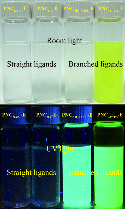 In a paper published June 13 in Angewandte Chemie, the UCSC researchers reported the results of experiments using unique branched ligands to synthesize perovskite nanocrystals with greatly improved stability and uniform particle size.