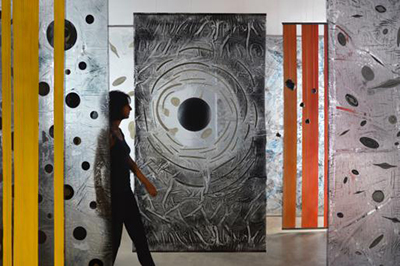 The result of his time at Lick and on campus is a new installation based loosely on current theories about the development of the universe, from just after the Big Bang to the present. Crotty’s new piece takes the form of an immersive, walk-in environment that includes drawing, sculpture, and fabric scrims coated with bio-resin.