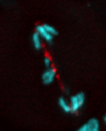Graduate student Travis Karg is first author of the new paper, which shows that spindle microtubules play an important role in driving the delayed segregation of chromosome fragments. The other coauthors, in addition to Sullivan, are Mary Williard Elting and Sophie Dumont at UC San Francisco and Hannah Vicars at UC Santa Cruz. This work was supported by grants from the National Institutes of Health.