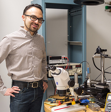 Jairo Velasco, an assistant professor of physics, is one of four faculty members in the new laboratories. He studies the novel electronic properties that emerge in nanoscale devices based on layered, two-dimensional materials. Graphene, for example, is a thin layer of carbon atoms bonded in a hexagonal honeycomb pattern, and it has received a lot of attention for its unusual properties.