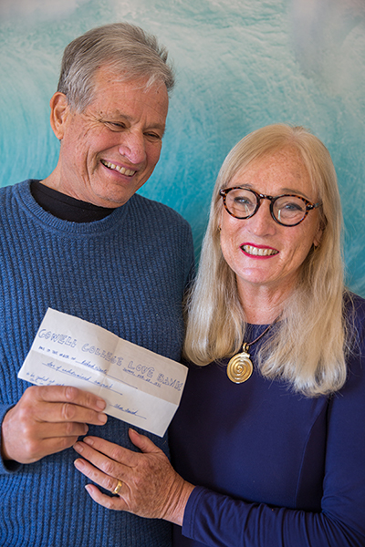 As an undergraduate at Cowell College, Alesa Lightbourne gave Rich Vicenti, a Cowell RA, a raincheck drawing on the “Cowell College Love Bank” and promising her love at an undetermined time in the future.