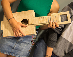 “I used a band saw, metal files, a nail gun, and wood glue,” said the Crown College human biology major, showing off the end result: a cool-looking, handmade ukulele crafted out of recycled wood.