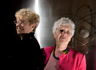 Freelance photo – CanWest use only // Kingston, Ontario, 06/17/09 Cosmologists (L) Sandra Faber and Vera Rubin pose for a portrait at the Atomica restaurant in Kingston on June 17, 2009 Photo by Lars Hagberg for the National Post