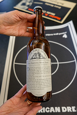 Mora said that in addition to first editions, translations, and pirated copies of Thompson’s books, the collection also includes rare printed materials, ranging from early broadside poster publications and collective artists’ magazines to fine press editions, and even a beer bottle containing a never before published short story printed on the label.