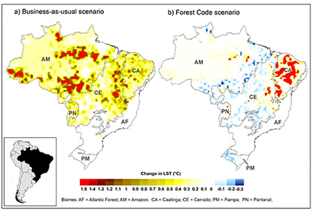 The new model quantifies the effect of forest change on local surface temperatures through changes in sunlight-reflection and evapotranspiration. The results for Brazil provide a case study showing that current land use policies can significantly affect local climate in the future.