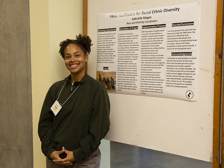 Gabrielle Magee co-led a team at the African American Resource and Cultural Center that aimed to make a more welcoming campus environment for marginalized communities. She trained a team of facilitators and convened discussions to raise awareness of topics like microaggressions and anti-blackness.“This project and the CUIP program helped me believe in the work I produce,” said Magee (Kresge ‘20, psychology). “From the feedback we received, the work we were doing was life-changing for some people.”