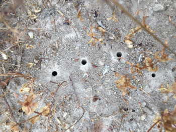 Ohlone tiger beetles lay their eggs in tiny burrows in the ground. (Photo courtesy of Alex Jones/UCSC)