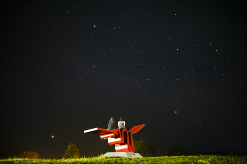 Students gaze at the stars from the top of the Porter swiggle. (Nick Gonzales/UC Santa Cruz)