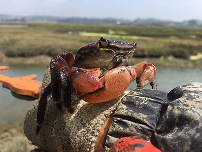The striped shore crab (Pachygrapsus crassipes) is a small crab found all along the West Coast of North America, and it is extremely abundant in Elkhorn Slough. The study demonstrated the dual role of these crabs as both consumers of salt marsh vegetation and as ecosystem engineers.
