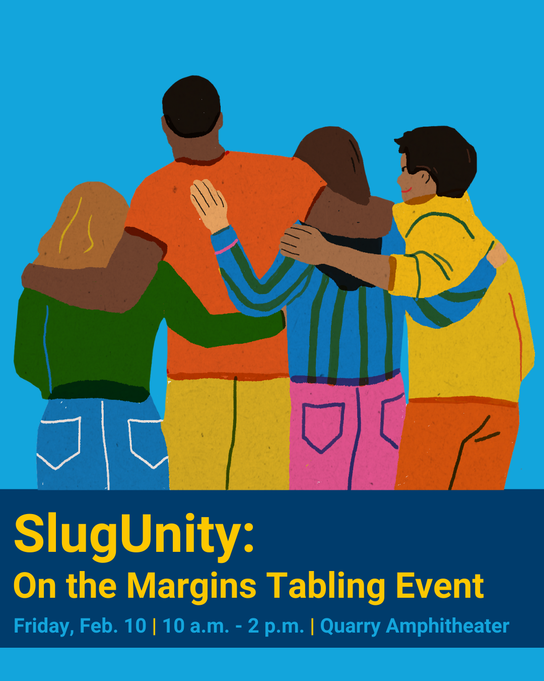 In continuation of SlugUnity: a space for community healing, On the Margins will be on campus this Friday, February 10 from 10 a.m. to 2 p.m. in Quarry Plaza. During this time, On the Margins will distribute wellness kits, social justice and racial justice literature, and resources.