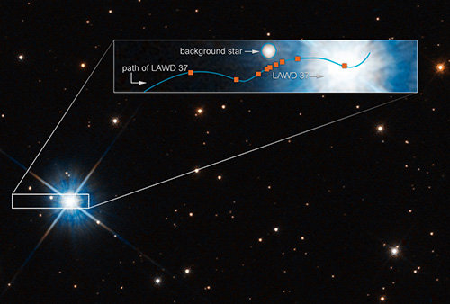 The international team used data from two telescopes to measure how light from a distant star bent around a white dwarf known as LAWD 37, causing the distant star to temporarily change its apparent position in the sky.