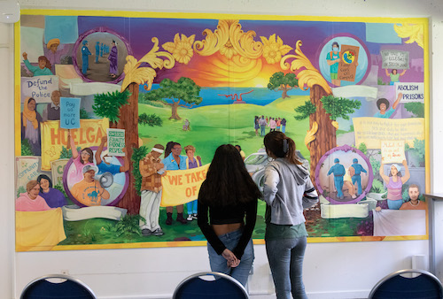 “I can’t quite believe it’s up because there’s not a lot of murals on campus like it,” she said. “It’s telling a story of something that is possible. Envisioning a future without police —I think that’s radical.”