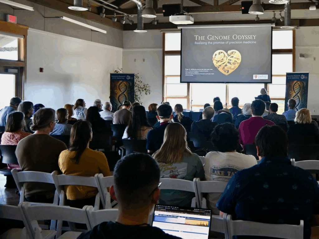 In his talk, Ashley noted that dramatic improvements in the speed and cost of genome sequencing have allowed it to become more prevalent in clinical settings. He described a collaboration with UC Santa Cruz that helped set a world record for sequencing a human genome in just over five hours. To illustrate the scale of that progress compared to 25 years ago, he noted that it would be the equivalent of a Ferrari’s top speed increasing from 199 mph to 32 million mph.